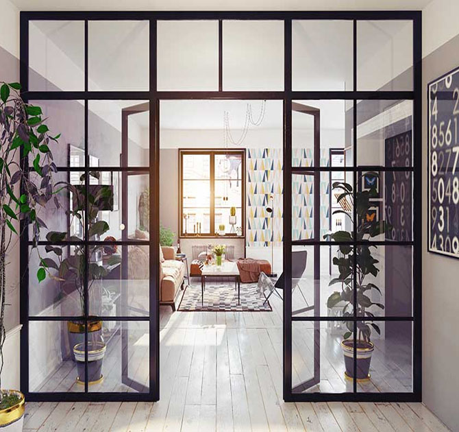 A glass partition is a type of wall or divider made entirely or mostly out of glass. It is commonly used in office spaces and other commercial buildings to create separate areas within a larger room or open floor plan, while still allowing for natural light and visibility. Glass partitions can also be used as a decorative feature in residential spaces, such as in homes or lofts. They can be either framed or frameless and are often used in combination with other materials like metal or wood.