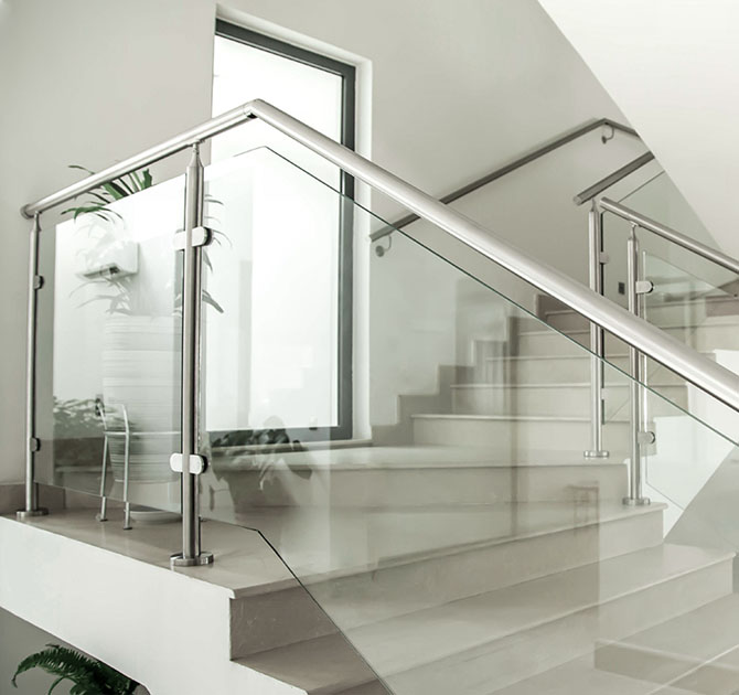 Glass railing is a type of railing system that uses glass panels as the infill. It is typically composed of a metal or aluminum frame that holds the glass in place, creating a barrier while still allowing for visibility. It is popular in both indoor and outdoor settings, such as on balconies, decks, and staircases. Glass railings are often used in modern and contemporary architectural designs and can add a sleek and minimalist aesthetic to a space. They can be either frameless or semi-frameless and can also be combined with other materials such as wood or stainless steel.